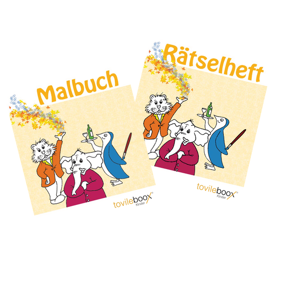 Tovileboox ist das kleine Taschenbuch für den großen und kleine Gast. In der ersten Phase kannst Du bei uns ein Malbuch und ein Rätselheft für den kleinen Gast erwerben.